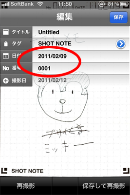 ついでに、メモ用紙の右上には通し番号と日付を書き込めるスペースがあって、そこに数字を書き込めばOCRでちゃんとデータとして反映させてくれる。